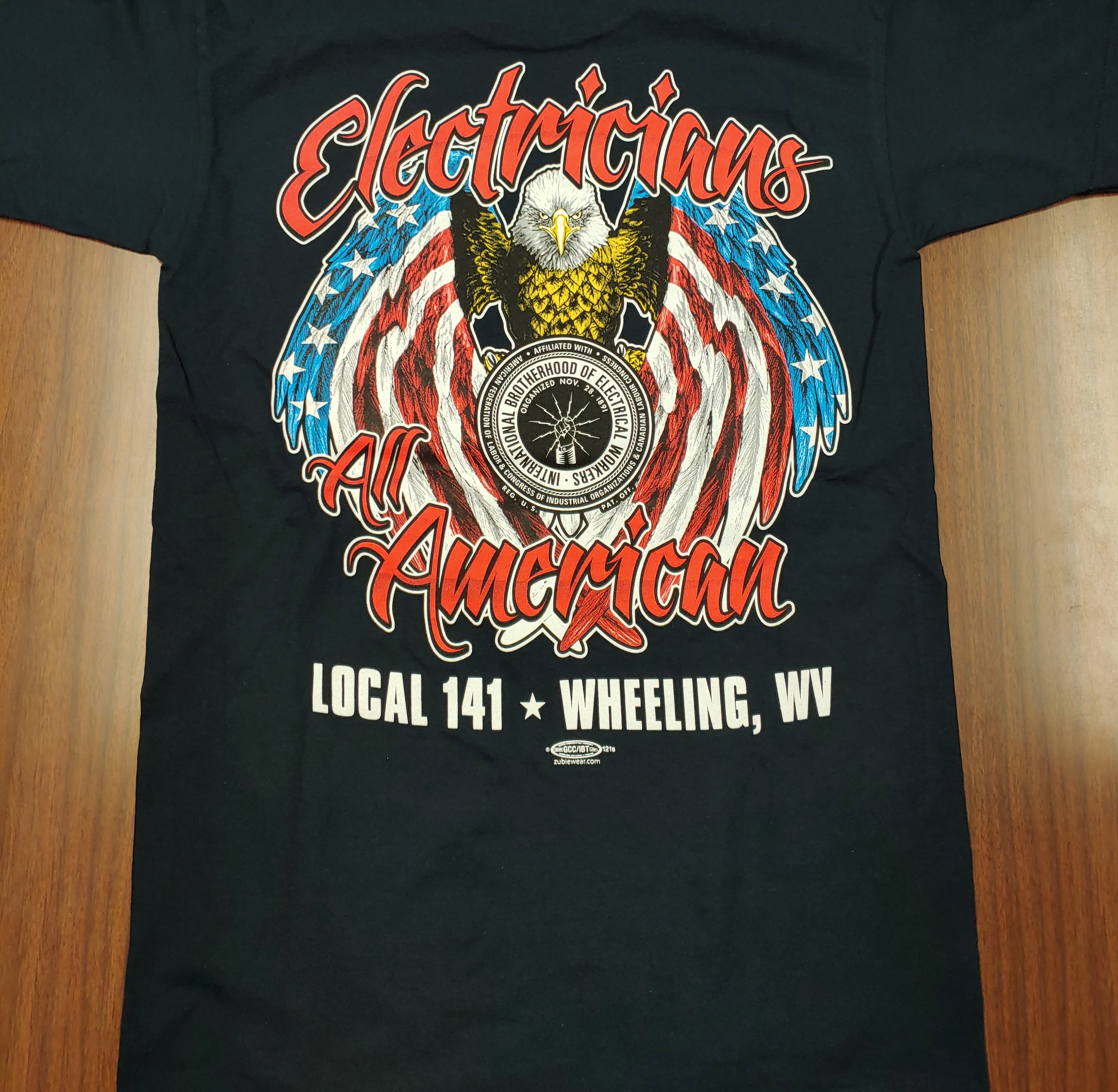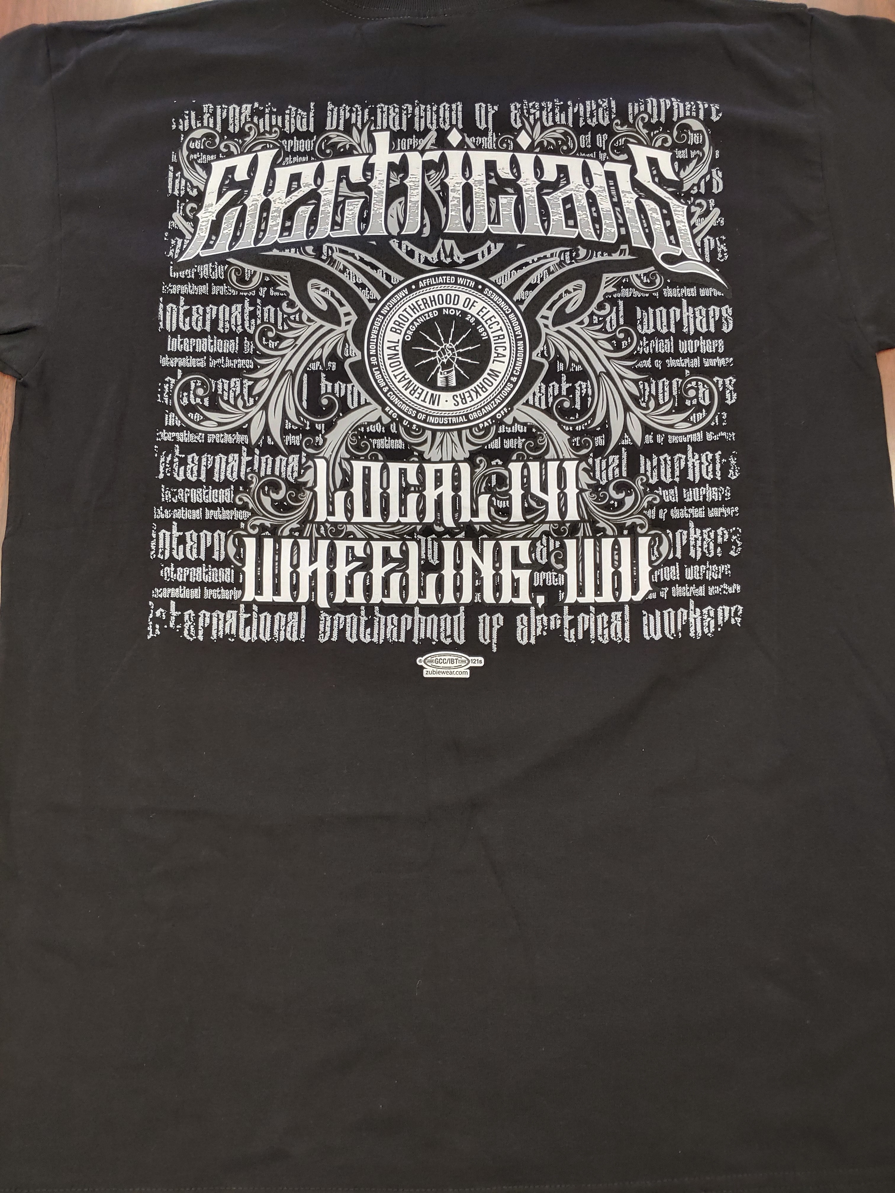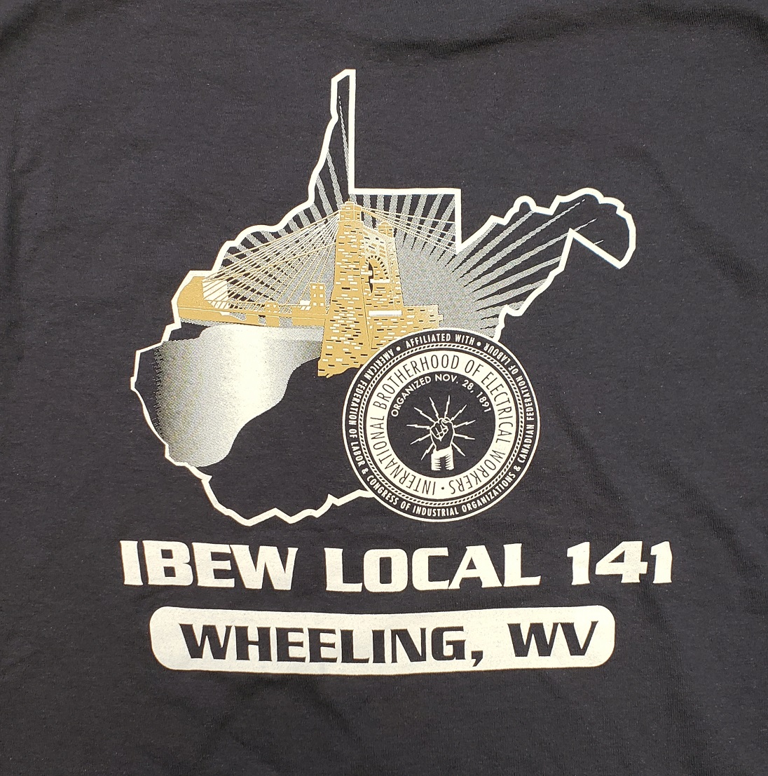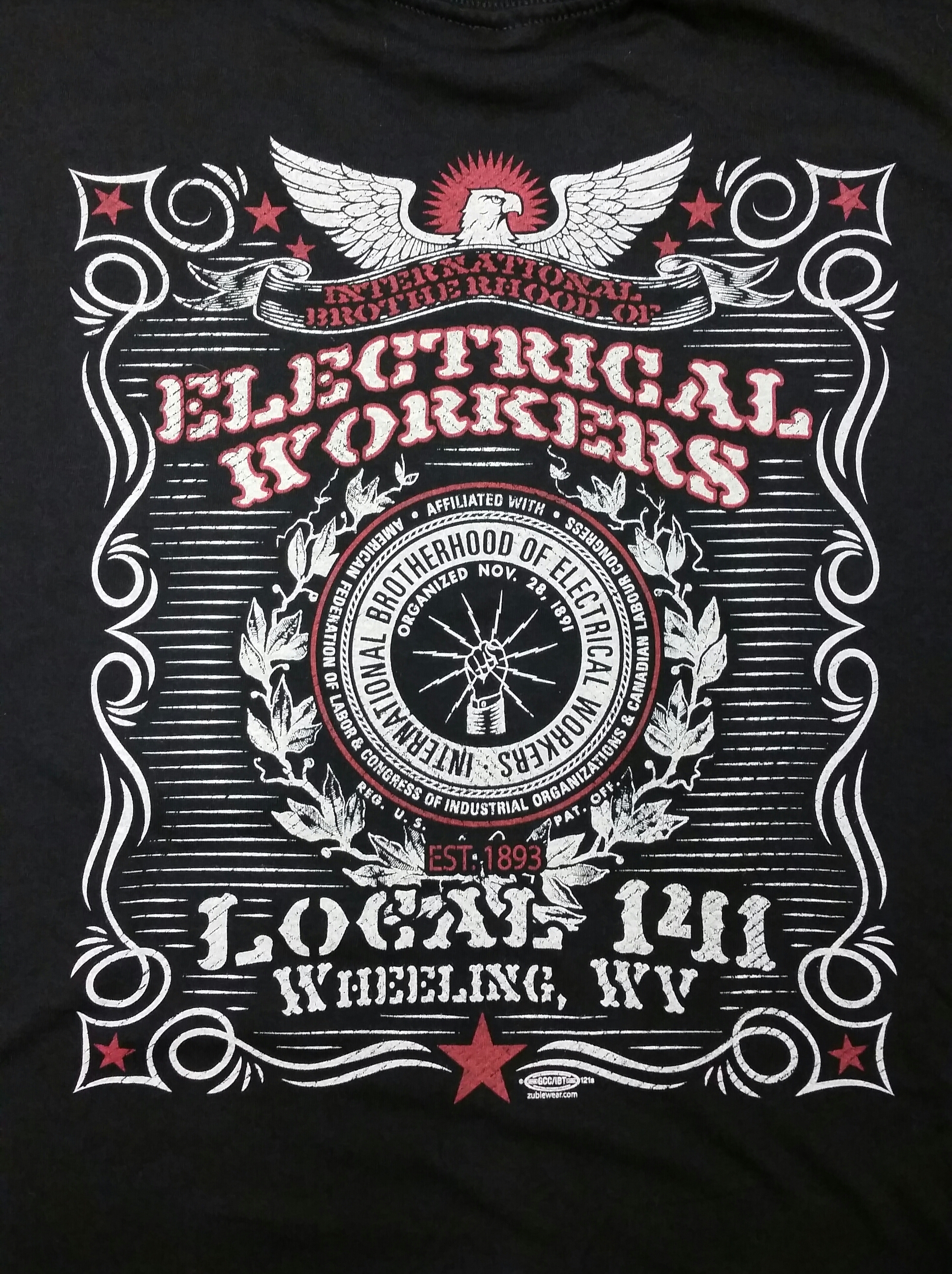 ong sleeve T-Shirt with pocket & logo $25.00 Local 141 on one sleeve and IBEW down the other sleeve Navy Blue only one Med available Black ***SOLD OUT*** |
