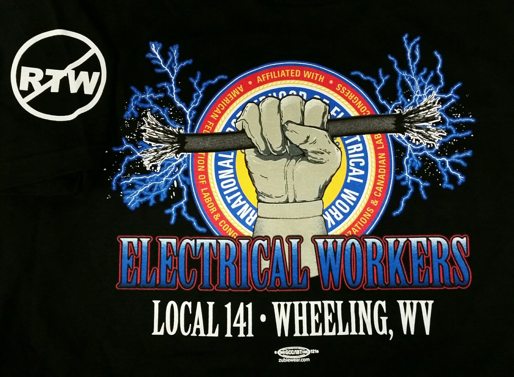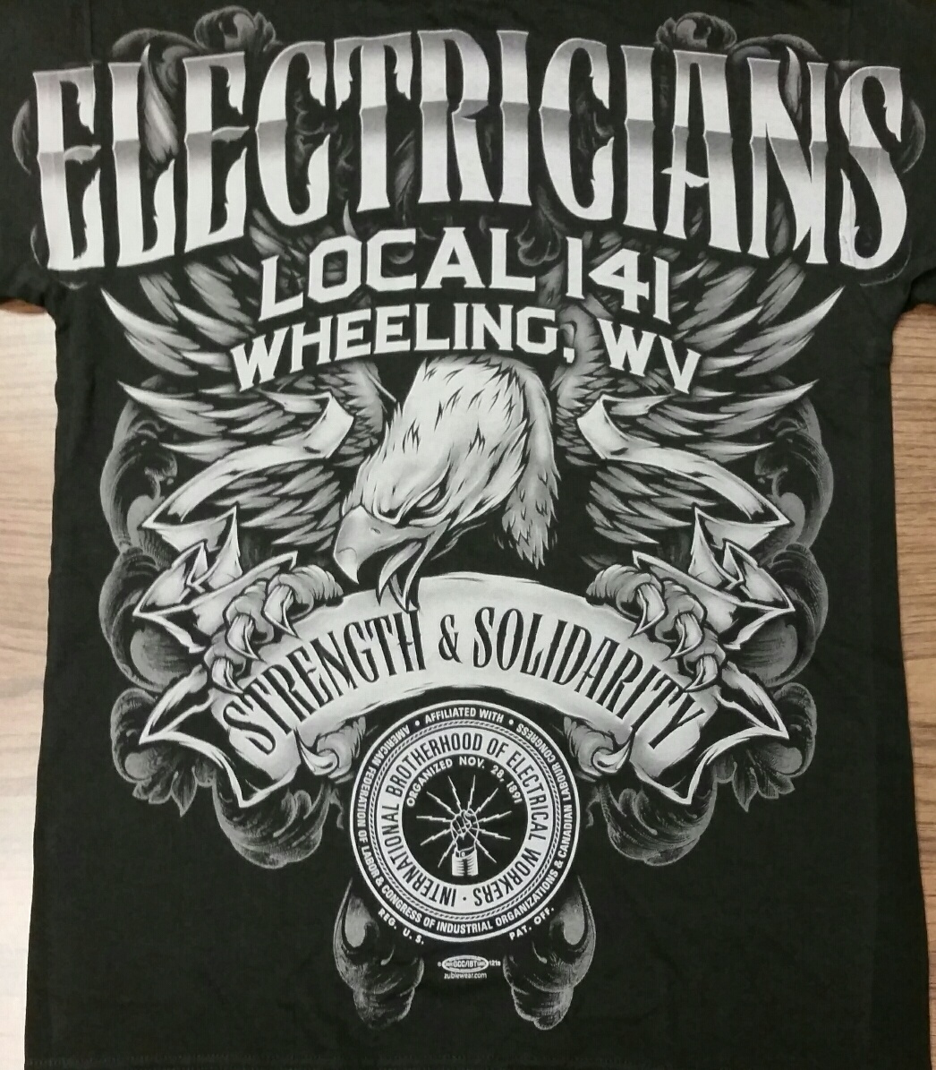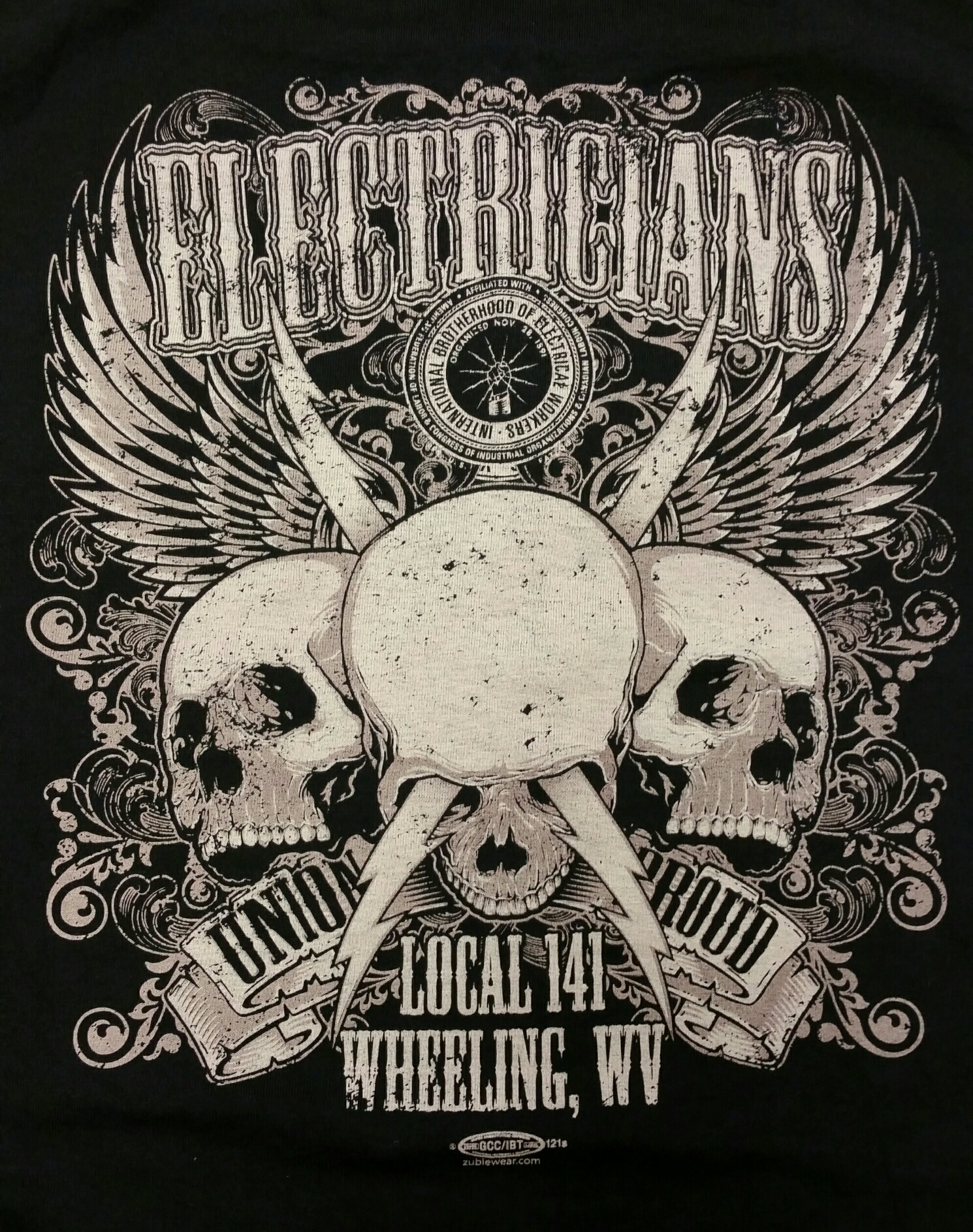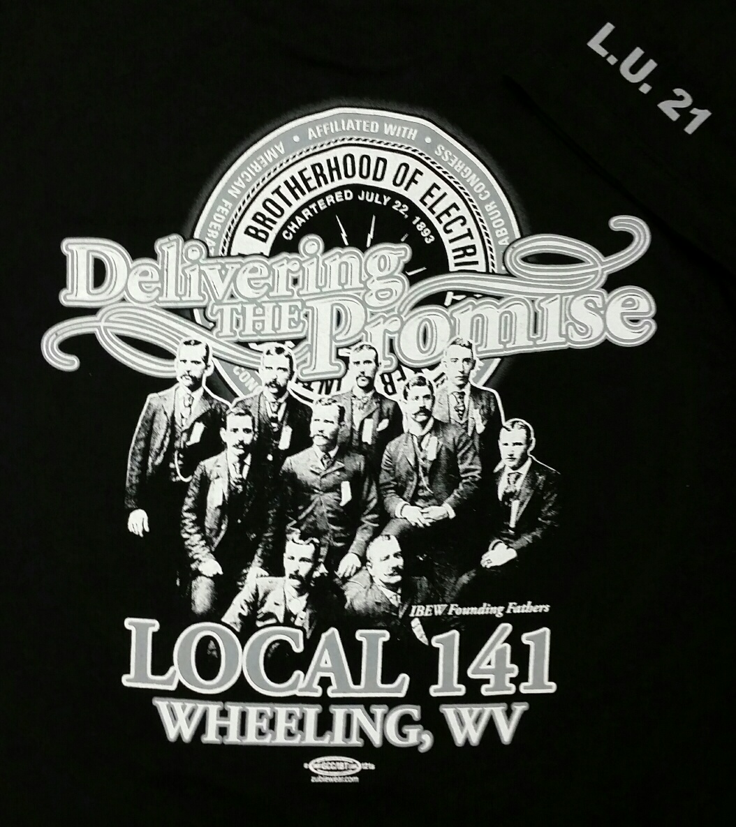 ong sleeve T-Shirt with pocket & logo $25.00 Local 141 on one sleeve and IBEW down the other sleeve Navy Blue only one Med available Black ***SOLD OUT*** |