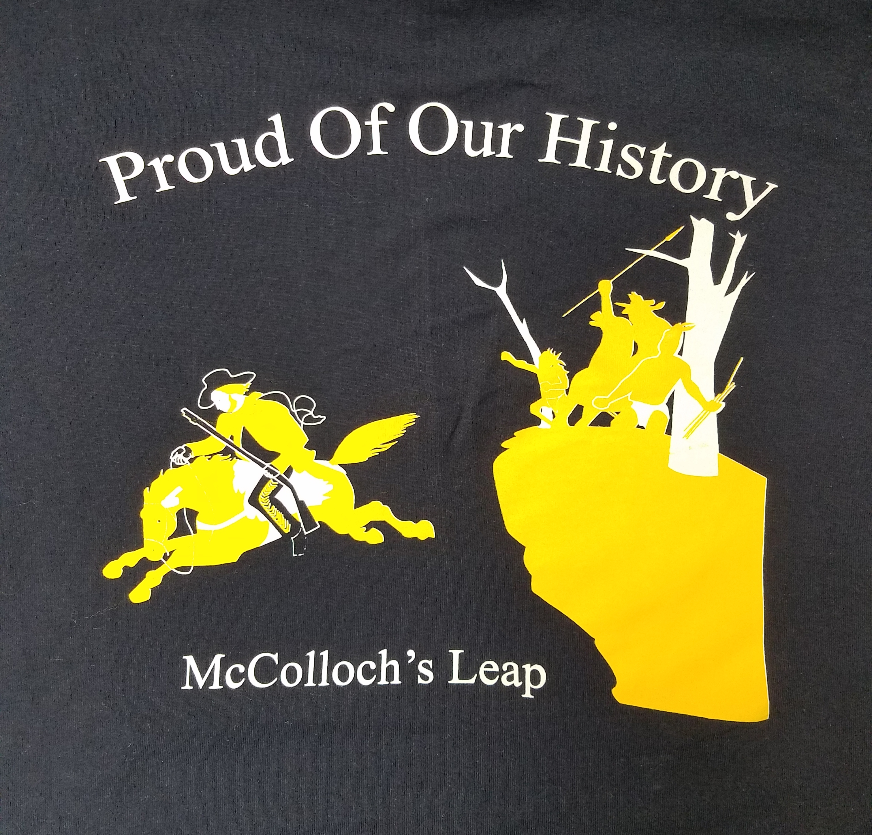 McColloch's Leap T-shirt $20.00 Reduced to $5.00 Navy blue shirt with image on back. Small yellow logo on front. ***SOLD OUT*** |