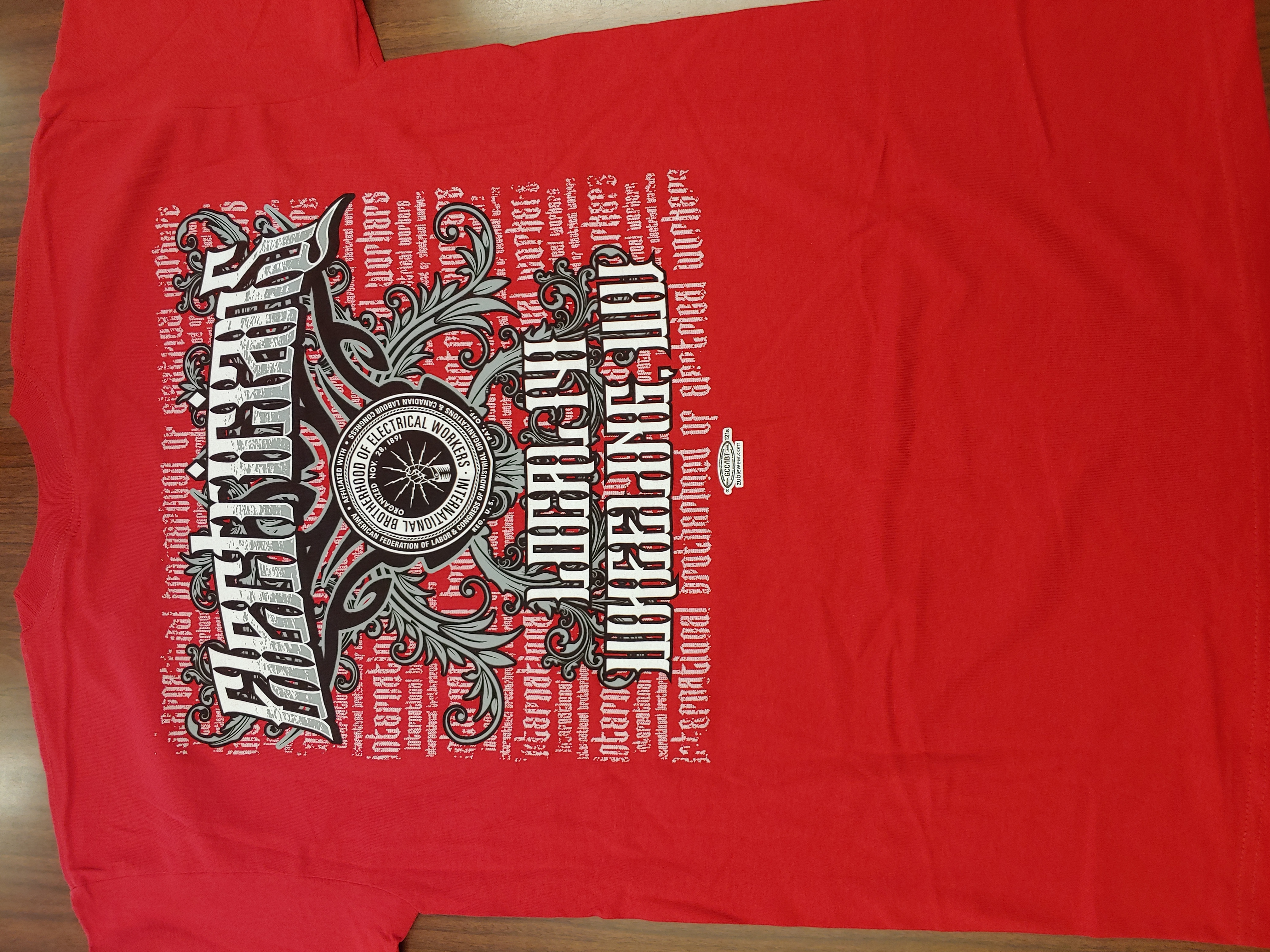 Electricians" T-shirt in red $20.00 Reduced $5.00 Front pocket with logo Available in 2XL & 4XL |